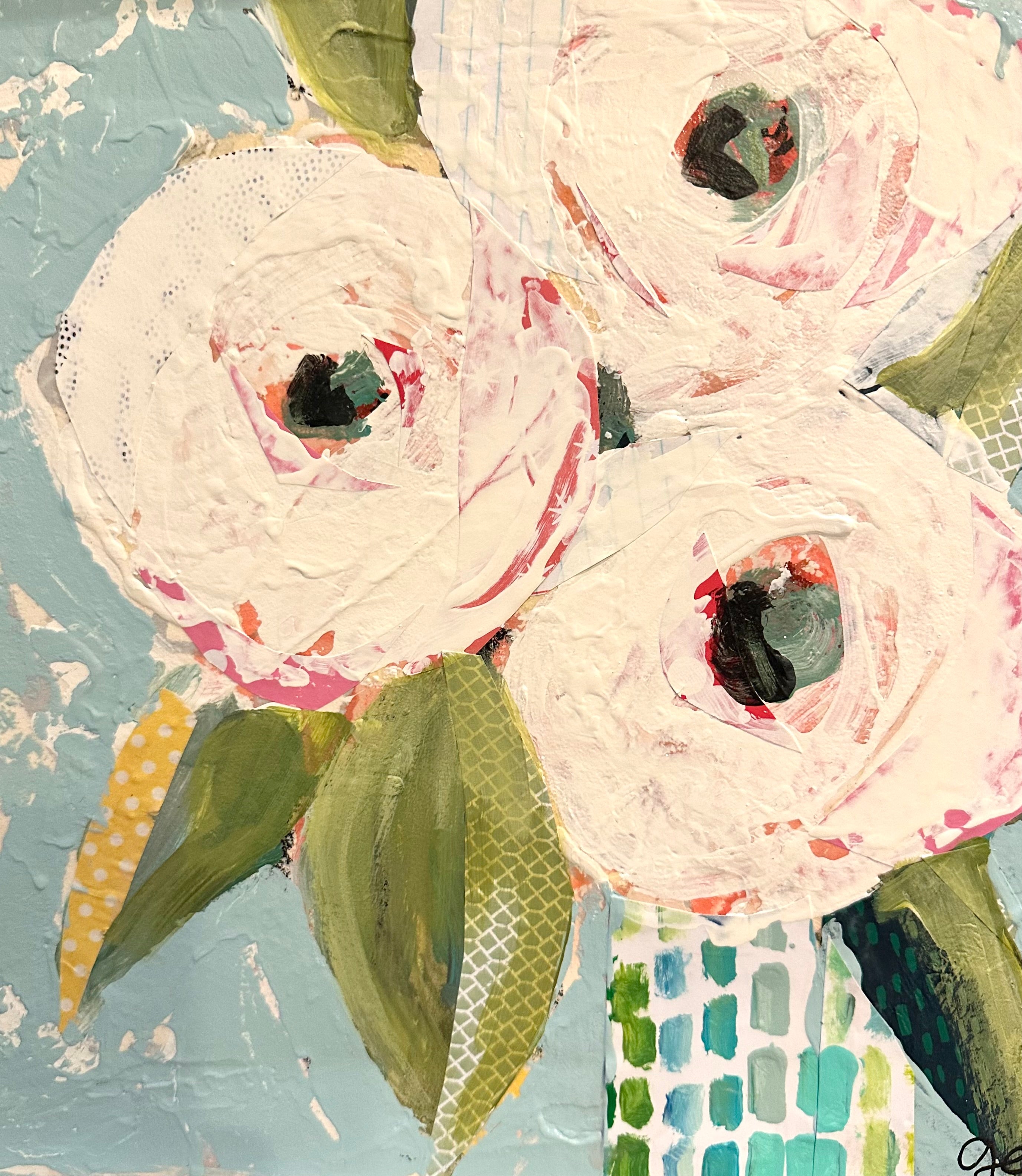 Encouraged to explore various artistic mediums from a young age, Ginny developed a passion for expressing her emotions through painting and mixed media. Her use of color and texture engages viewers, inviting them to explore themes of happiness, beauty, and connection.