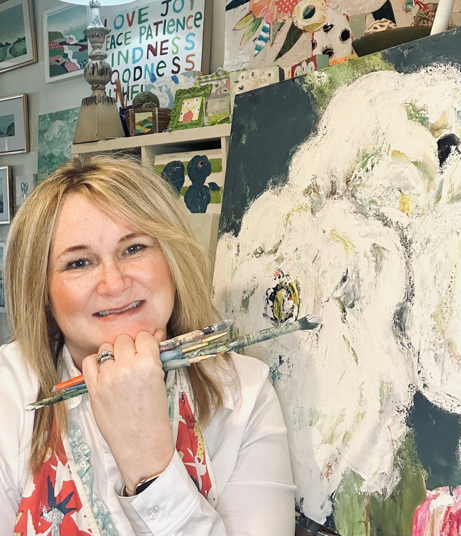 Ginny loves painting and loves spending time in her studio. She is always creating something new. Please keep checking back for her newest and latest works. Please make sure you are up to date on her latest shows. We are always happy to meet new friends and love making connections through art shows!